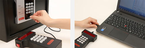 オーバーライド オーディト キット(オプション)はより高い次元のリスクマネジメントに対応。金庫のUSBポートにキットを差し込むことで過去100回の利用履歴を抽出可能。