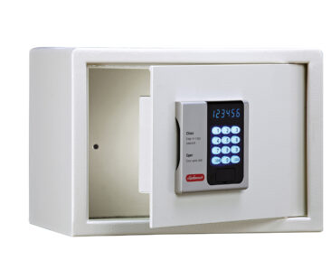 ゲストの皆様に安心と便利さをお届けするシンプル操作で使い易いスタイリッシュな客室用金庫。