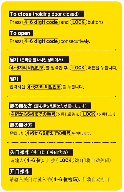 • 正面操作だけで面倒な登録作業がありません。開ける毎に入力した暗証番号がリセットされます。